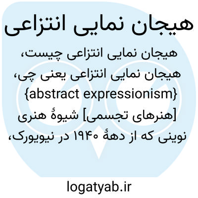 {abstract expressionism} [هنرهای تجسمی] شیوۀ هنری نوینی که از دهۀ 1940 در نیویورک، متأثر از دو شیوۀ هیجان نمایی و سورئالیسم (surrealism ) پا گرفت؛ در این طرز بیان تلاش می شود تا شکل و فضا از قید بازنمایی عینی و سنتی رها شود