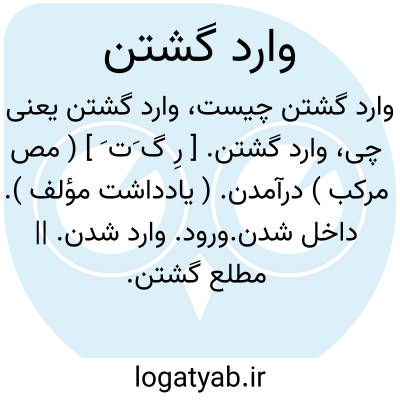 وارد گشتن. [ رِ گ َت َ ] ( مص مرکب ) درآمدن. ( یادداشت مؤلف ). داخل شدن.ورود. وارد شدن. || مطلع گشتن. واقف گشتن. به رموز کاری آشنا شدن. و رجوع به وارد شدن شود.