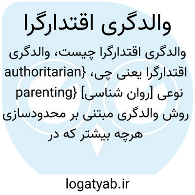 {authoritarian parenting} [روان شناسی] نوعی روش والدگری مبتنی بر محدودسازی هرچه بیشتر که در آن والد یا پرستار بر اطاعت اصرار می ورزد و گفت وگو و تشریک مساعی را کنار می گذارد و برای جلوگیری از رفتار ناخواسته به مجازات رو می آورد