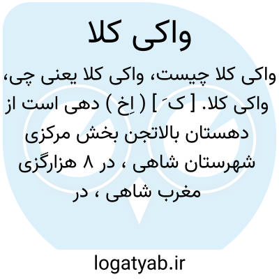 واکی کلا. [ ک َ ] ( اِخ ) دهی است از دهستان بالاتجن بخش مرکزی شهرستان شاهی، در 8 هزارگزی مغرب شاهی، در دشت معتدل هوای مرطوبی واقع است و 90 تن سکنه دارد. آبش از نهر هتکه و رودخانه تالار، محصولش غلات و برنج و پنبه و ابریشم و شغل اهالی زراعت است. ( از فرهنگ جغرافیائی ایران ج 2 ص 131 ).