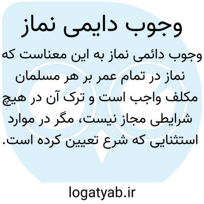 «وجوب دائمی نماز» به این معناست که نماز در تمام عمر بر هر مسلمان مکلف واجب است و ترک آن در هیچ شرایطی مجاز نیست، مگر در موارد استثنایی که شرع تعیین کرده است. واژه‌ی «وجوب» به معنای «الزام شرعی» و «دائمی» به معنای «همیشگی و بی‌وقفه» است. بنابراین، وجوب دائمی نماز یعنی این فریضه در همه‌ی زمان‌ها و مکان‌ها بر انسان مسلمان واجب بوده و با گذر زمان یا تغییر شرایط از دوش او برداشته نمی‌شود.