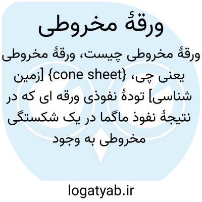 {cone sheet} [زمین شناسی] تودۀ نفوذی ورقه ای که در نتیجۀ نفوذ ماگما در یک شکستگی مخروطی به وجود آمده است