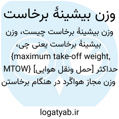 {maximum take-off weight, MTOW} [حمل ونقل هوایی] حداکثر وزن مجاز هواگَرد در هنگام برخاستن از روی باند پرواز