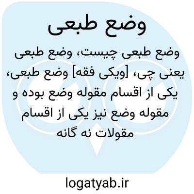 وضع از مقولات عرضی است که بر دو قسم طبعی و غیر طبعی تقسیم نموده اند، و در توضیح آن دو قسم چنین آورده اند: " وضع گاهی بالطبع است مثل وضع زمین نسبت به فلک، و گاهی نه، مثل وضع ساکن خانه نسبت به آن ".
