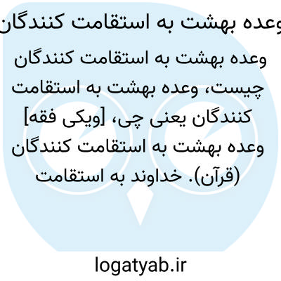 [ویکی فقه] وعده بهشت به استقامت کنندگان (قرآن). خداوند به استقامت کنندگان در راه خدا بشارت بهشت می دهد.