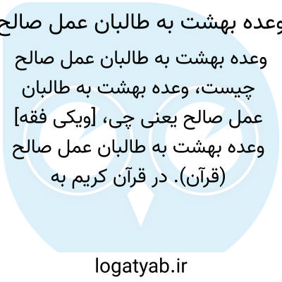 [ویکی فقه] وعده بهشت به طالبان عمل صالح (قرآن). در قرآن کریم به طالبان عمل صالح، از سوی خداوند بشارت بهشت داده شده است.