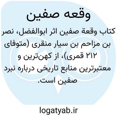 [ویکی نور] وقعة صفین، اثر ماندگار نصر بن مزاحم منقری، به زبان عربی است که توسط عبدالسلام محمدهارون تحقیق و منتشر شده است.