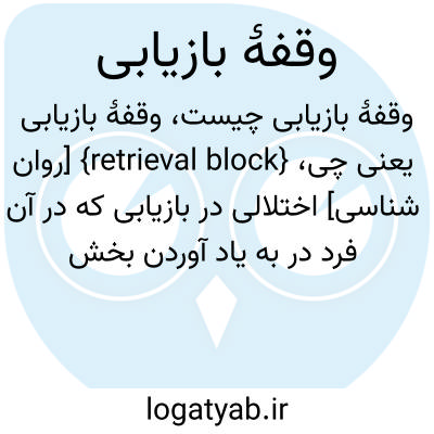 {retrieval block} [روان شناسی] اختلالی در بازیابی که در آن فرد در به یاد آوردن بخش خاصی از اطلاعات ناتوان است؛ ازجمله مصادیق آن پدیدۀ نوک زبانی است