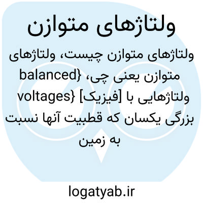 {balanced voltages} [فیزیک] ولتاژهایی با بزرگی یکسان که قطبیت آنها نسبت به زمین مخالف هم است