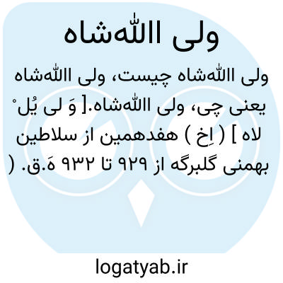 ولی اﷲشاه.[ وَ لی یُل ْ لاه ] ( اِخ ) هفدهمین از سلاطین بهمنی گلبرگه از 929 تا 932 هَ.ق. ( یادداشت مرحوم دهخدا ).