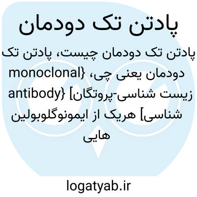 {monoclonal antibody} [زیست شناسی-پروتگان شناسی] هریک از ایمونوگلوبولین هایی (imunoglobulins ) که از یاخته های یک تاگ واحد به دست می آید