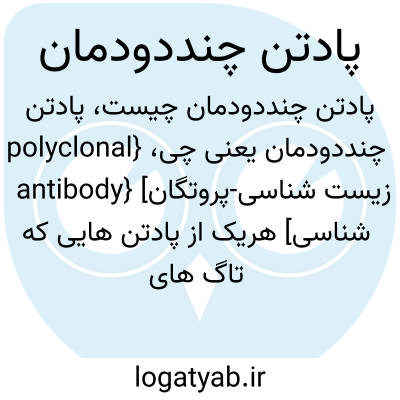 {polyclonal antibody} [زیست شناسی-پروتگان شناسی] هریک از پادتن هایی که تاگ های متفاوت لنفوسیت های B را می سازند