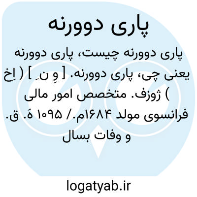 پاری دوورنه. [ وِ ن ِ ] ( اِخ ) ژوزف. متخصص امور مالی فرانسوی مولد 1684م./ 1095 هَ. ق. و وفات بسال 1770م.1183/ هَ. ق. وی مشهورترین برادران پاری است.