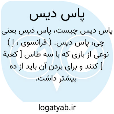 پاس دیس. ( فرانسوی، اِ ) نوعی از بازی که با سه طاس [ کعبة ] کنند و برای بردن آن باید از ده بیشتر داشت.