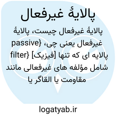 {passive filter} [فیزیک] پالایه ای که تنها شامل مؤلفه های غیرفعالی مانند مقاومت یا القاگر یا خازن است و عنصر فعالی مانند ترانزیستور در آن وجود ندارد