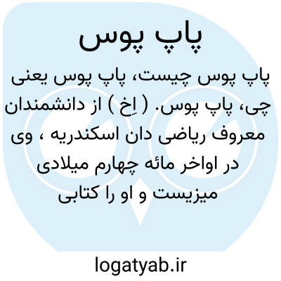 پاپ پوس. ( اِخ ) از دانشمندان معروف ریاضی دان اسکندریه، وی در اواخر مائه چهارم میلادی میزیست و او را کتابی است به یونانی بنام «مجموعه های ریاضی » و کتابی دیگر در جغرافیا. متن یونانی کتاب دوم از میان رفته ولی ترجمه لاطینی آن موجود است، واز کتاب نخستین او نیز نسخه ناتمامی در دست است.