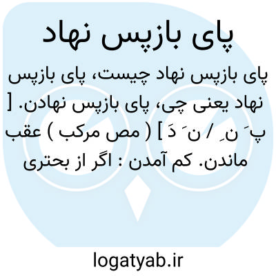پای بازپس نهادن. [ پ َ ن ِ / ن َ دَ ] ( مص مرکب ) عقب ماندن. کم آمدن: اگر از بحتری شاعر وزیر قصیده ای بدین روی و وزن و قافیه خواهد هم از آن پای باز پس نهد. ( تاریخ بیهقی ).