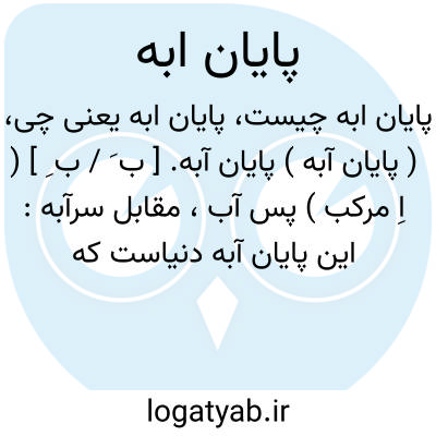 ( پایان آبه ) پایان آبه. [ ب َ / ب ِ ] ( اِ مرکب ) پس آب، مقابل سرآبه: این پایان آبه دنیاست که بشما رسید بدین خوشی تا سرآبه اش چگونه باشد. ( کتاب المعارف ).