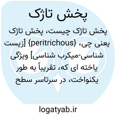 {peritrichous} [زیست شناسی-میکرب شناسی] ویژگی یاخته ای که، تقریباً به طور یکنواخت، در سرتاسر سطح آن تاژک وجود دارد