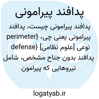 {perimeter defense} [علوم نظامی] نوعی پدافند بدون جناح مشخص، شامل نیروهایی که پیرامون یک منطقۀ دفاعی گسترش یافته اند