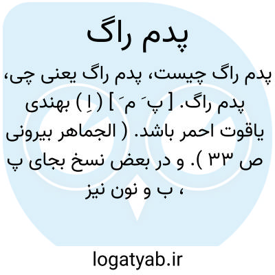 پدم راگ. [ پ َ م َ ] ( اِ ) بهندی یاقوت احمر باشد. ( الجماهر بیرونی ص 33 ). و در بعض نسخ بجای پ، ب و نون نیز آمده است.