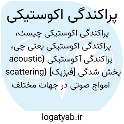 {acoustic scattering} [فیزیک] پخش شدگی امواج صوتی در جهات مختلف براثر بازتاب شکست و پراش نامنظم