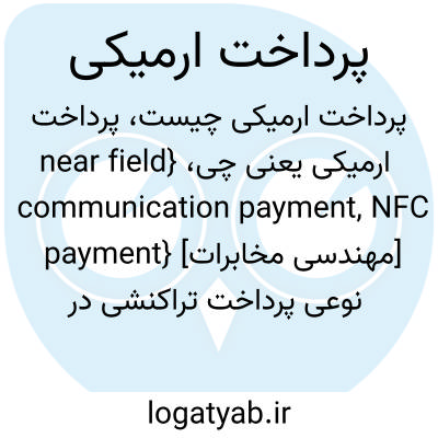 {near field communication payment, NFC payment} [مهندسی مخابرات] نوعی پرداخت تراکنشی در فروشگاه ها یا در حمل ونقل عمومی با استفاده از افزاره ای سیار مانند تلفن همراه ارتباطات میدان نزدیک