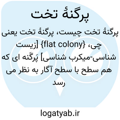 {flat colony} [زیست شناسی-میکرب شناسی] پَرگَنه ای که هم سطح با سطح آگار به نظر می رسد