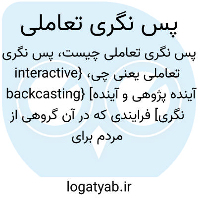 {interactive backcasting} [آینده پژوهی و آینده نگری] فرایندی که در آن گروهی از مردم برای ساختن آینده و شناسایی فرصت ها و نشانه های راهنما و موانع پیشِ روی، در تعامل با یکدیگر تصویر یا تصاویری از آینده را به منزلۀ نقطۀ آغاز حرکت روبه عقب تا زمان حال انتخاب می کنند
