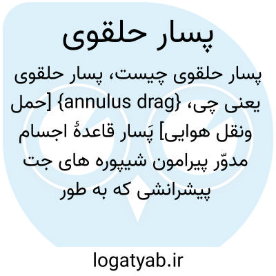 {annulus drag} [حمل ونقل هوایی] پَسار قاعدۀ اجسام مدوّر پیرامون شیپوره های جت پیشرانشی که به طور ناقص قاعدۀ وسیلۀ هوایی را در بر می گیرد