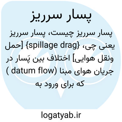 {spillage drag} [حمل ونقل هوایی] اختلاف بین پَسار در جریان هوای مبنا (datum flow ) که برای ورود به موتور طراحی شده است و جریان هوای مازاد که از روی موتور عبور می کند