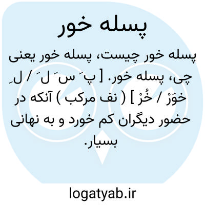 پسله خور. [ پ َ س َ ل َ / ل ِ خوَرْ / خُرْ ] ( نف مرکب ) آنکه در حضور دیگران کم خورد و به نهانی بسیار.