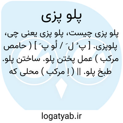 ۱- عمل پلو پختن طبخ پلو. ۲- ( اسم ) پلوپز خانه
