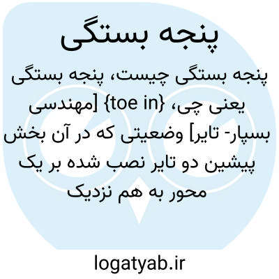 {toe in} [مهندسی بسپار- تایر] وضعیتی که در آن بخش پیشین دو تایر نصب شده بر یک محور به هم نزدیک تر باشند