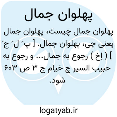 پهلوان جمال. [ پ َ ل َ ج َ ] ( اِخ ) رجوع به جمال... و رجوع به حبیب السیر چ خیام ج 3 ص 603 شود.