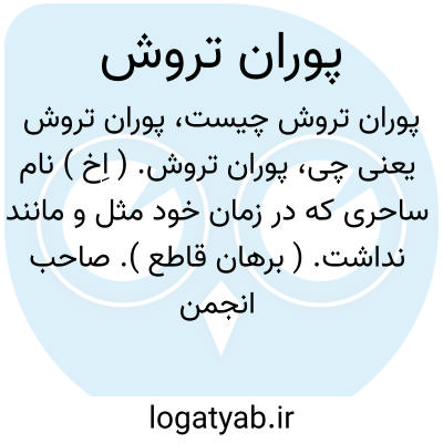 پوران تروش. ( اِخ ) نام ساحری که در زمان خود مثل و مانند نداشت. ( برهان قاطع ). صاحب انجمن آرای ناصری گوید نام ساحری بود معاصر زردشت -انتهی. باید دانست که طبق سنت زرتشتیان شهادت زرتشت بدست یکتن تورانی بنام براترک رش، برات رش، برات رییش و یا برادرش ( به اختلاف قرائت های پهلوی ) انجام گرفت. نام این شخص در بندهش و زادسپرم ذکر شده و جزو پنج برادری که از خاندان کرپ بودند معرفی شده است. در بهمن یشت فصل 2 بند 2 آمده: «زراتشت از اهورمزدا بیمرگی ( جاودانی ) خواست. اهورامزدا در پاسخ گفت: اگر من تراجاودان سازم آنگاه تور برادرش، هم بیمرگ خواهد شد و بنابراین رستاخیز هم ممکن نخواهد بود». در داستان دینیک ( کتاب دینی پهلوی ) آمده: «برادر کرش بهترین مردان ( یعنی زرتشت ) را بکشت ». در سنت مزدیسنان آمده که در حین شهادت، در دست زرتشت مهره ستایشی ( تسبیحی )بود و چون آن گجسته ( ملعون ) خواست وی را بکشد، زرتشت مهره بگسیخت و او را بسوزانید. طبق روایات داستانی، این واقعه در حمله دوم ارجاسپ تورانی ببلخ صورت گرفت. در آن زمان گشتاسب در سیستان بود و در بلخ جز لهراسب پدر پیر و منزوی گشتاسب کس نبود. او نیز در جنگ کشته شد. تورانیان به آتشکده نوش آذر که مقام زرتشت بود رفتند و وی را با هشتاد هیربد دیگر بکشتند. فردوسی این واقعه را بتفصیل آورده است. مؤلف انجمن آرا گوید: « بعد از سی سال از حکومت گشتاسب، ارجاسپ ازترکستان بدارالملک بلخ تاخته لهراسپ را بکشت و تور براتور به آتش خانه آمد و زرتشت را از پای درآورد و مدت عمرش هفتاد و هفت سال بوده است.» ( مزدیسنا و تأثیر آن در ادبیات پارسی دکتر معین صص 79 - 80 ). و بدیهی است که ( پوران تروش ) مصحف نام تورانی مذکور است.