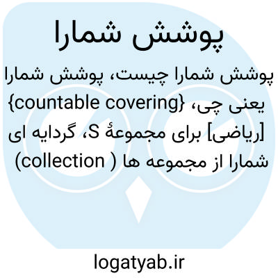{countable covering} [ریاضی] برای مجموعۀ S، گردایه ای (collection ) شمارا از مجموعه ها که اجتماع آنها شامل S باشد