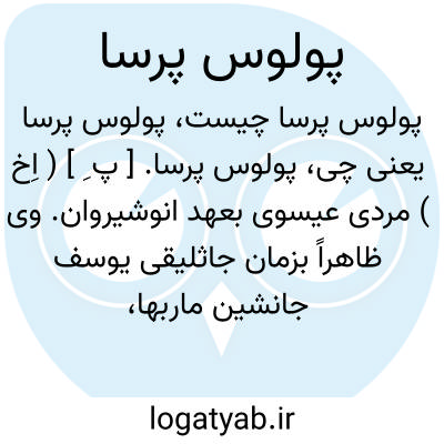 پولوس پرسا. [ پ ِ ] ( اِخ ) مردی عیسوی بعهد انوشیروان. وی ظاهراً بزمان جاثلیقی یوسف جانشین ماربها، مطران نصیبین بوده ومختصری از منطق ارسطو را برای شاه بسریانی ترجمه کرده است. ( ترجمه ایران در زمان ساسانیان چ 2 ص 449 ).