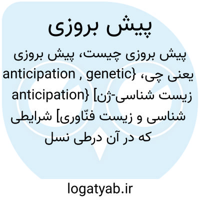 {anticipation , genetic anticipation} [زیست شناسی-ژن شناسی و زیست فنّاوری] شرایطی که در آن درطی نسل های متوالی سن بروز برخی از بیماری های ارثی به تدریج جلو می افتد و شدت بیماری نیز افزایش پیدا می کند
