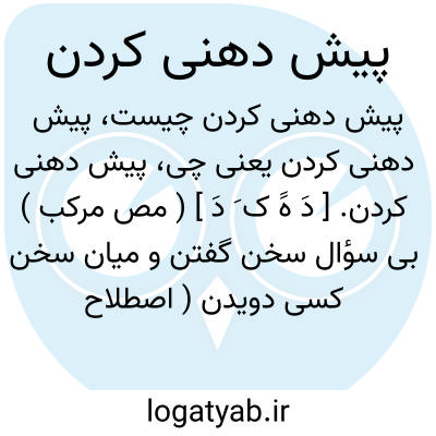 پیش دهنی کردن. [ دَ هََ ک َ دَ ] ( مص مرکب ) بی سؤال سخن گفتن و میان سخن کسی دویدن ( اصطلاح مردم جنوب خراسان ).