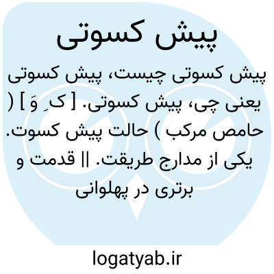 پیش کسوتی. [ ک ِ وَ ] ( حامص مرکب ) حالت پیش کسوت. یکی از مدارج طریقت. || قدمت و برتری در پهلوانی زورخانه.