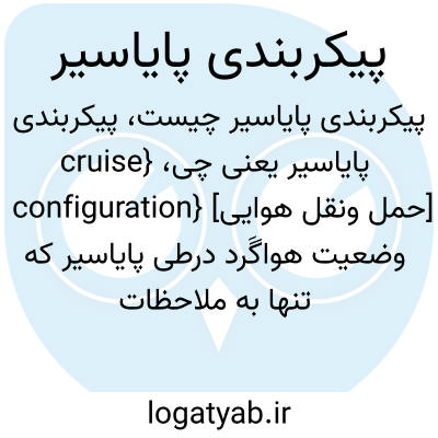 {cruise configuration} [حمل ونقل هوایی] وضعیت هواگَرد درطی پایاسیر که تنها به ملاحظات آئرودینامیکی محدود نیست، بلکه وضعیت سامانه ها و مکان و وظایف خدمۀ پرواز را نیز در بر می گیرد