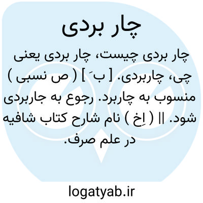 چاربردی. [ ب َ ] ( ص نسبی ) منسوب به چاربرد. رجوع به جاربردی شود. || ( اِخ ) نام شارح کتاب شافیه در علم صرف. ( ناظم الاطباء ).