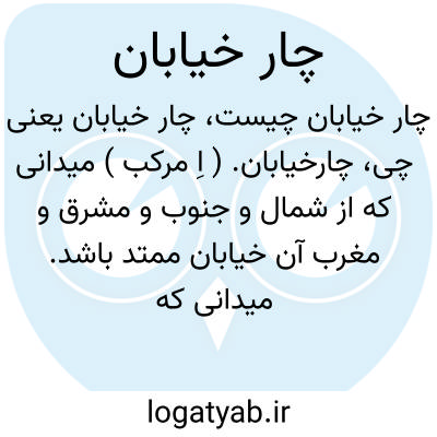 چارخیابان. ( اِ مرکب ) میدانی که از شمال و جنوب و مشرق و مغرب آن خیابان ممتد باشد. میدانی که از چهار سمت بخیابان متصل است و از هر طرف آن خیابانی امتداد یافته است. || محل تقاطع چهار خیابان که بر یکدیگر عمود باشند. آنجا که دو خیابان تقاطع کنند.