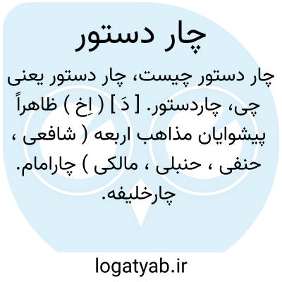 چاردستور. [ دَ ] ( اِخ ) ظاهراً پیشوایان مذاهب اربعه ( شافعی، حنفی، حنبلی، مالکی ) چارامام. چارخلیفه. چارتن پیشوایان مذاهب اهل سنت: