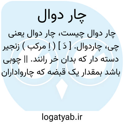 چاردوال. [ دَ ] ( اِ مرکب ) زنجیر دسته دار که بدان خر رانند. || چوبی باشد بمقدار یک قبضه که چارواداران بر سر آن میخی کوچک بقدرمهمیزی نصب نمایند و زنجیری با چند حلقه و چهار تسمه بر آن تعبیه کنند و الاغ و چاروا را بدان برانند. ( برهان قاطع ). || در بیت زیر از رضی الدین نیشابوری ظاهراً چاردوال معنی دیگر دارد: