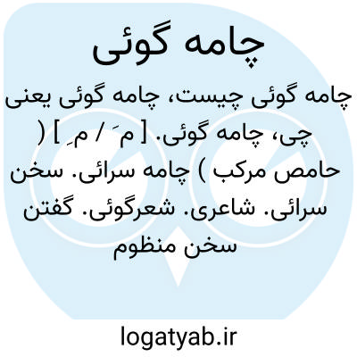 چامه گوئی. [ م َ / م ِ ] ( حامص مرکب ) چامه سرائی. سخن سرائی. شاعری. شعرگوئی. گفتن سخن منظوم و کلام موزون ومقفی. || سرایندگی. آوازه خوانی. خوانندگی شعر و غزل با آواز. خواندن شعر و تصنیف و سرود به آهنگ و در دستگاه موسیقی. و رجوع به چامه سرائی شود.