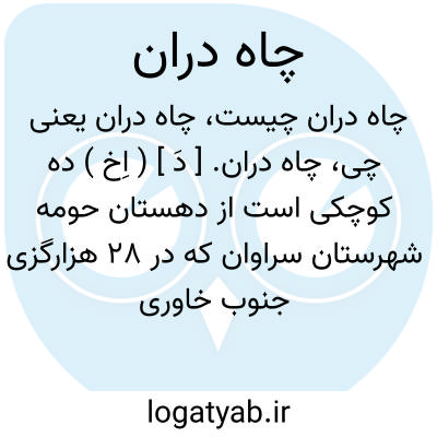 چاه دران. [ دَ ] ( اِخ ) ده کوچکی است از دهستان حومه شهرستان سراوان که در 28 هزارگزی جنوب خاوری سراوان و یک هزارگزی جنوب شوسه سراوان به کوهک واقع شده و 20 تن سکنه دارد. ( از فرهنگ جغرافیایی ایران ج 8 ).