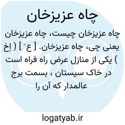 چاه عزیزخان. [ ع َ ] ( اِخ ) یکی از منازل عرض راه فراه است در خاک سیستان، بسمت برج عالمدار که آن را شیرده هم مینامند در طرف شرقی دریاچه سیستان واقع است. ( از مرآت البلدان ج 4 ص 133 ).