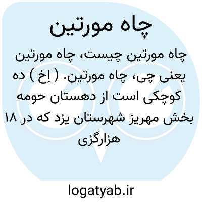 چاه مورتین. ( اِخ ) ده کوچکی است از دهستان حومه بخش مهریز شهرستان یزد که در 18 هزارگزی جنوب باختر مهریزو 1 هزارگزی خاور راه فخرآباد به سریزد واقع شده. جلگه و معتدل است و 63 تن سکنه دارد. آبش از قنات، محصولش غلات، شغل اهالی زراعت، صنایع دستی زنان نساجی وراهش فرعی است. ( از فرهنگ جغرافیایی ایران ج 10 ).